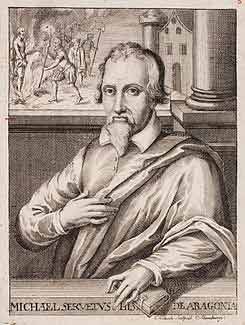 Nace en Villanueva de Sijena en septiembre de 1511. Estudia en Zaragoza, Barcelona y medicina en París, siendo condiscípulo y amigo a Vesalio, el futuro gran maestro de anatomía. En 1553 publica Christianismi restitutio, libro en el que renueva la herejía de Arrio y describe la circulación de la sangre y que le llevará a la hoguera en Ginebra, donde muere el 27 de octubre de ese mismo año.